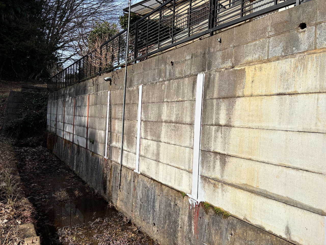 本物件南側の擁壁は建築確認を取得せずに施工されています。将来建物を建築する際にはこの擁壁のやり直しが必要となる可能性が高いです。